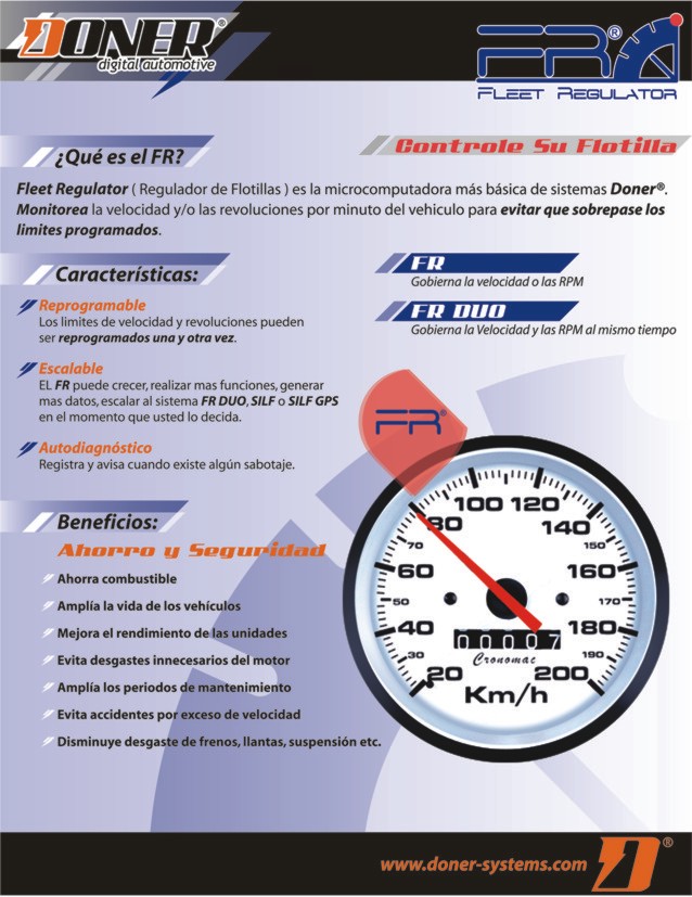 El nuevo sistema FR-DUO extendido ademas de controlar tanto velocidad como RPM de su vehiculo, ahora impide que el vehiculo encienda si el equipo es saboteado. Los productos vehiculares de Donner Systems siguen mejorando el rendimiento, aumentando la productividad, ahorrando energia, etc.