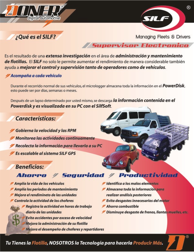 El sistema SILF ofrece todos los beneficios de un sistema FR-DUO (control de RPM, control de velocidad, y todos los beneficios del FR) y además proporciona la ventaja de obtener información. La diferencia principal entre el sistema FR y el SILF es que el FR cuenta con un programador de mano para configurar los limites y el sistema SILF se configura mediante un software. Además el sistema SILF almacena información en tiempo real de los recorridos del vehículo que puede ser descargarda y visualizada en un software.